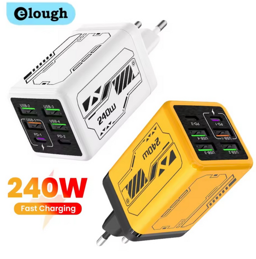 "Cargador Rápido 240W Glough – 6 Puertos en 1"